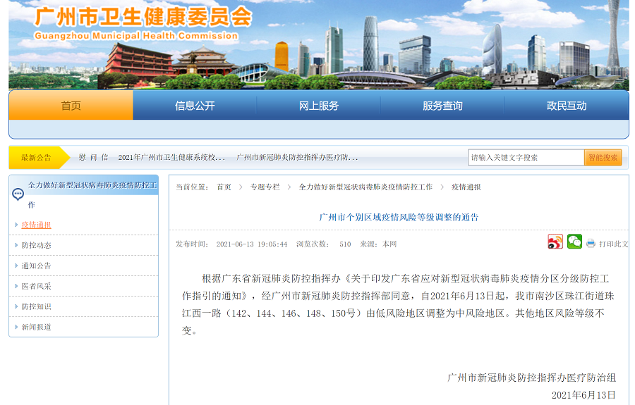 據廣州市衛生健康委官網6月14日早上通報:6月11日晚,廣州醫科大學附屬市八醫院在對醫務人員進行的例行新冠病毒核酸檢測中,發現兩名陽性感染者。接報后,相關部門及時進行處置。有關情況通報如下: