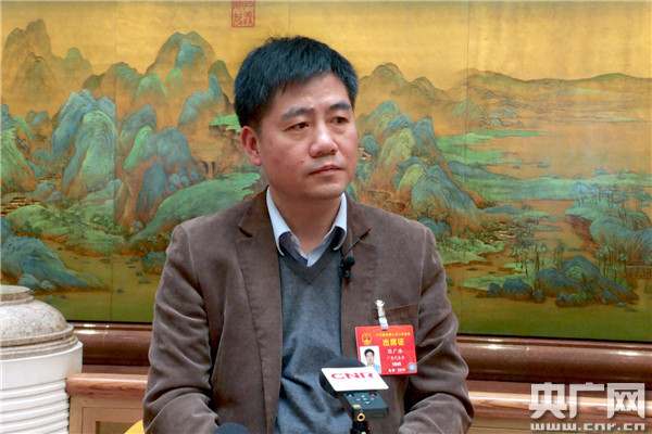 全國人大代表陳廣浩在接受央廣記者專訪。(央廣網記者 官文清 攝)