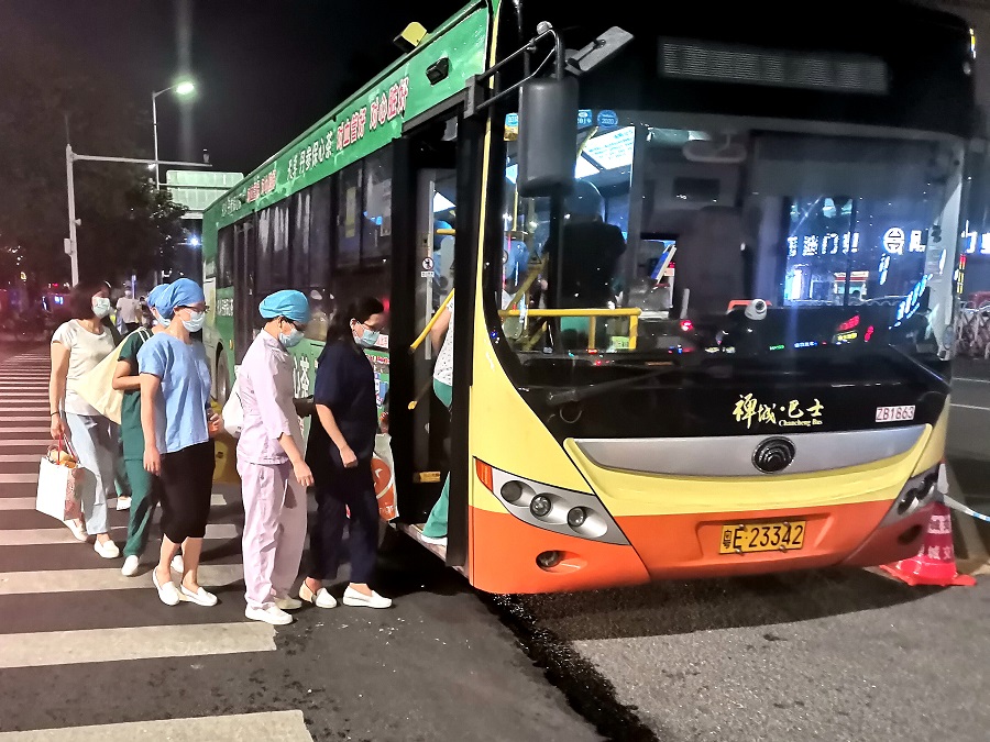 29日凌晨2點多,完成防控任務返家的兩名營運負責人途徑石灣街道辦,發現還有超過30名醫護人員仍在等待。詢問得知,原來已是深夜,醫護人員離開遇到困難。兩人馬上與公司溝通,派出一輛公交車前來接送。