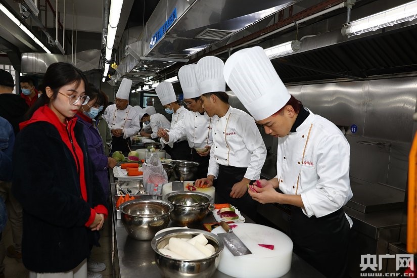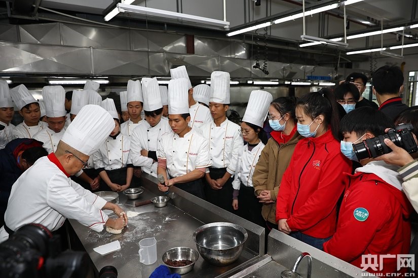 央廣網佛山12月17日消息(記者陳越)揉面團、片魚片、雕花……近日,“大國工匠灣區行”走進順德職業廚師學院,國賽選手們在學院課堂體驗后廚工作,與廚師學院的教師學員們進行學習交流。目前,順德廚師學院已聘請黎永泰、羅福南等20位中國烹飪大師擔任順德廚師學院的兼職教授,讓順德名廚投身教學事業,培養粵菜廚師后備人才。