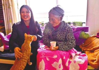 劉琳輕輕推開門,朝里張望,奶奶正在睡覺,窩在奶奶懷里的貓豎起耳朵,一直看著她。這只貓叫“鐺鐺”,劉琳去學校上課的時候,就只有鐺鐺陪著奶奶。坐在床沿,看著睡夢中的奶奶,劉琳露出了微笑。