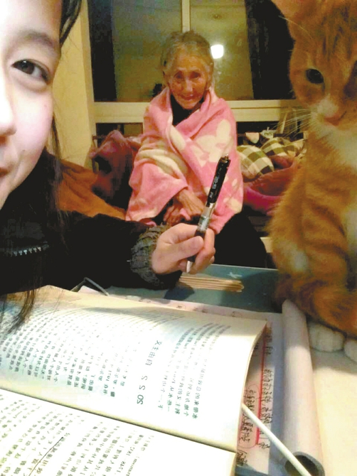 劉琳一邊上學,一邊照顧著93歲的奶奶。