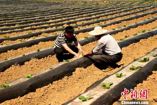 蘇兆俊下田指導煙農移栽煙葉。 邢翀 攝