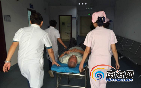 老人被送至海口市第四人民醫院搶救。南海網記者馬偉元 攝