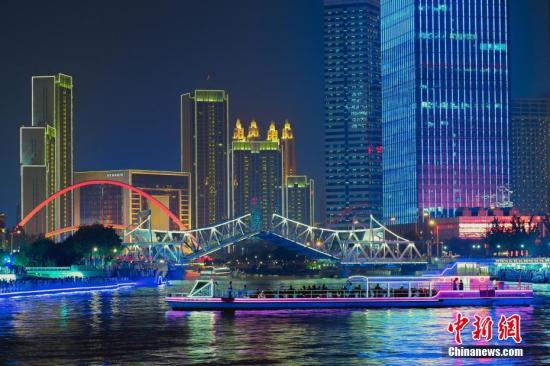 8月17日晚,第十三屆全運會即將開幕,“點亮海河”活動在天津海河兩畔的進行了彩排、預演。 中新社記者 佟郁 攝