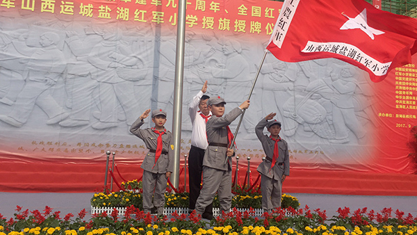 9月18日下午,中國工農紅軍山西運城鹽湖紅軍小學舉行授旗授牌感恩捐贈儀式。鹽湖區(qū)十四小更名為“中國工農紅軍山西運城鹽湖紅軍小學”,正式加入全國紅軍小學隊伍,成為全國掛牌的231所紅軍小學之一。