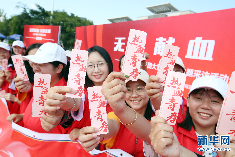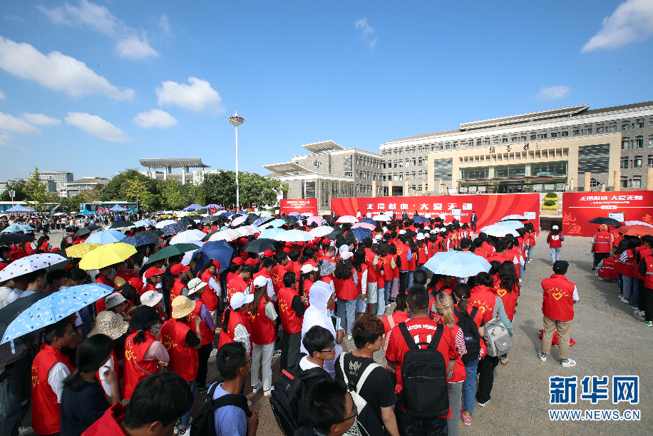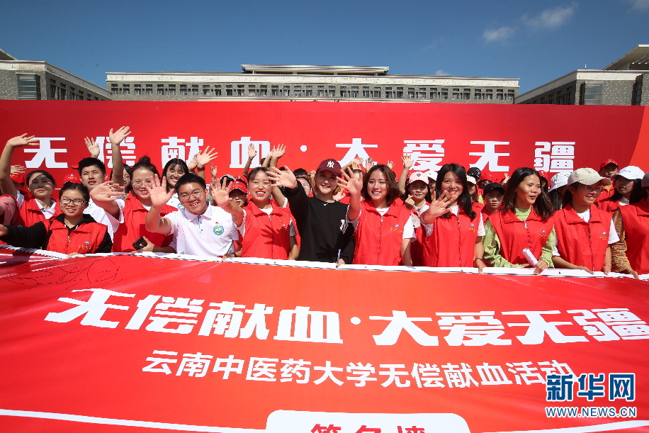 (17日,“無償獻血·大愛無疆——你就是傳奇”走進高校大型主題活動在云南中醫藥大學啟動,當日有超過1000名師生參與獻血。該活動將持續走進云南省各所高校。 陳飛 攝)
