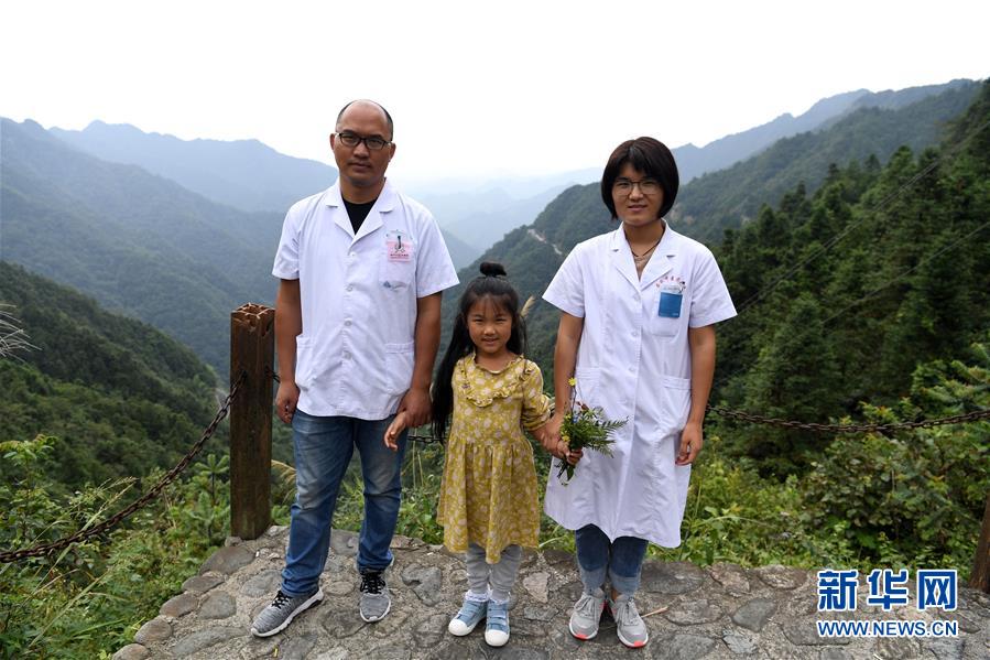 8月31日,張清語(yǔ)和爸媽在璜尖鄉(xiāng)的一座山頂上。新華社記者劉軍喜攝