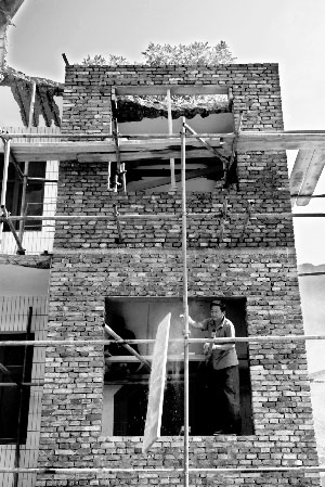 災后對房屋進行加固。記者 盛學卿 攝