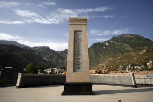 “月圓村村莊沒了,這里以后就是追思園!”月圓村村委會主任劉小林告訴記者,在月圓村原址附近,記者看到泥石流肆虐后沉積的淤泥已經被徹底清除,三眼峪峪口兩邊被毀壞的房子大部分都被拆除,這里成了災后重建的工地,新的排洪溝和護坡工程正在加緊施工當中。在曾經的月圓村原址上,舟曲縣政府新修建的“追思園”已經完工,將在8月8日揭牌。紀念碑高8.8米,寓意泥石流災害發生時間為8月8日,長達22.85米的紀念墻呈圓弧狀,半繞紀念碑,高2.1米,碑上鐫刻著在那次泥石流災害中的遇難者和失蹤者的姓名。值得一提的是,記者發現太陽下山的時候,縣城許多老老少少、男男女女都會來到這里,追思亡靈,每個路過這里的人也都會不由自主地停下腳步,默默地站立著,緬懷親人。