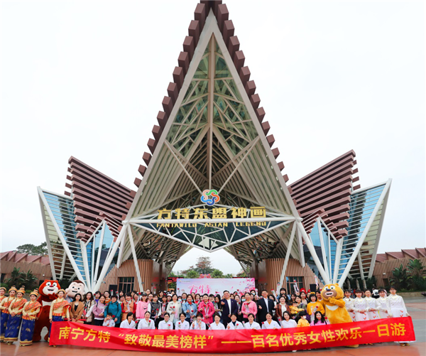 3月8日,由百余名優秀女性組成的代表團,受邀來到南寧方特東盟神畫主題樂園暢游,觀摩高科技項目,了解東南亞各國歷史文化,體驗東南亞各國風土人情。10時,樂園正門外舉行歡迎儀式,禮儀人員為代表團嘉賓送上鮮花,現場開展“致敬了不起的她”主題宣講,向現場優秀女性代表致以誠摯的感謝和熱情的節日問候。優秀女性代表團成員任女士表示:“我們平日忙于工作,這次的活動讓我們可以度過一個輕松愉快、富有意義的節日。”