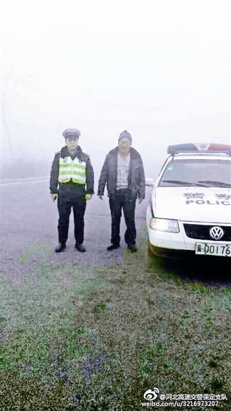 12月5日,河北高速交警總隊保定支隊官方微博發布微博稱,4日恰逢重大霧霾天氣,全省高速基本全部關閉,保定成了“重災區”。一輛私家車霧霾天在高速上行駛,突然車上一位老人有情況發生需要下車解決,于是司機就把車停在了路邊。可是司機等了半天就是不見老人回來,情急之下司機打電話給高速交警涿州大隊進行求助。民警聽說有人在高速走失后就馬上進入高速公路進行尋找。經過民警的搜尋,最后在北京琉璃河的便道上發現了老人,最終民警將老人安全地帶給了他的家人。