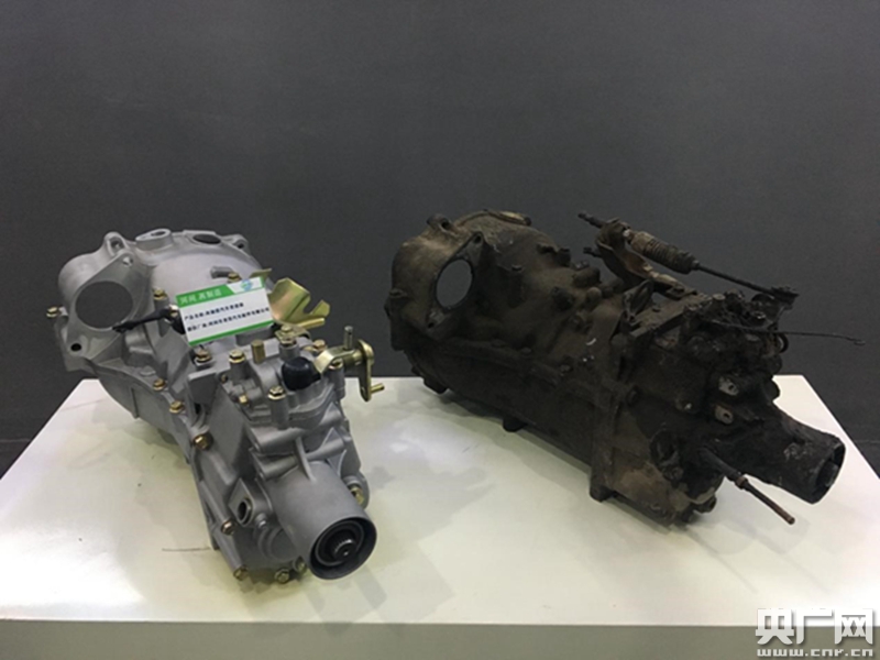 再制造汽車變速器(左)與回收的舊件(右)對比。央廣見習記者張曉琳攝