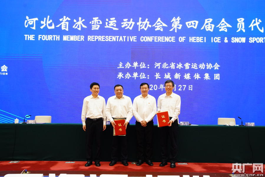 新當選的河北省冰雪運動協會主席馬來順(左二)接受證書(央廣網發 許付磊 攝)