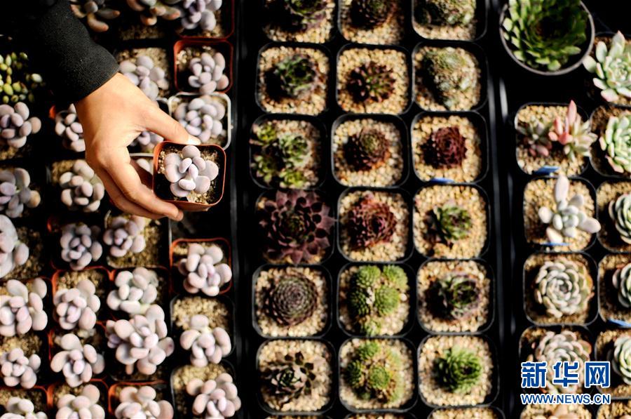2月28日,河北省巨鹿縣南街村村民在大棚內(nèi)擺放多肉植物。近年來,河北省巨鹿縣大力發(fā)展特色種植業(yè),依托當(dāng)?shù)鼗ɑ苊缒井a(chǎn)業(yè)資源優(yōu)勢,鼓勵農(nóng)民打造多肉植物生產(chǎn)研發(fā)基地和休閑旅游基地,并結(jié)合市場需求推行“線上”和“線下”相結(jié)合的銷售模式,為農(nóng)民拓寬了增收渠道。 新華社記者 牟宇 攝