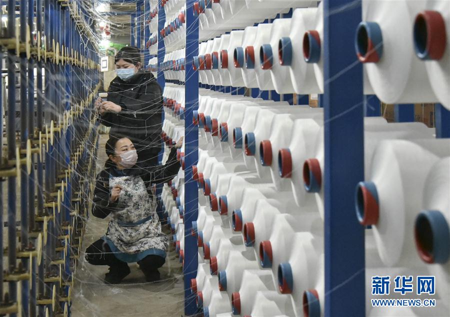 2月27日,工人在河北省曲周縣一家紡織企業(yè)車間內(nèi)工作。