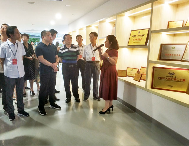 隨后,代表參觀了天鷹兄弟無人機展廳、企業(yè)文化墻等,并觀看了天鷹兄弟植保無人機作業(yè)視頻。現(xiàn)場負責人張思玲為大家詳細介紹了天鷹兄弟自成立以來發(fā)展歷程以及獲得的多項榮譽,代表們對天鷹兄弟企業(yè)創(chuàng)新創(chuàng)業(yè)發(fā)展成果以及在農(nóng)業(yè)植保無人機領(lǐng)域做出的突出成績給予高度的評價。