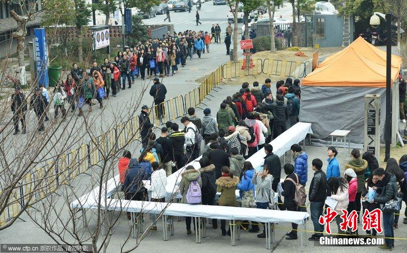 央廣網河南分網消息 據中新網報道:2014年02月12日,浙江省杭州市,考生在中國美術學院的確認現場外等候。當日,中國美術學院開始進行2014藝考現場確認,數萬考生來到現場進行確認。據了解,中國美術學院2014藝考現場確認同時在杭州、北京、廣州、成都等六個城市舉行,將有超過八萬考生進行現場確認,其中杭州進行現場確認的考生超過三萬余人。(圖片來源:CFP視覺中國)