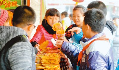 央廣網河南分網消息 據人民網報道:2月26日中午,蘭州市蘭鐵二小門口,一些剛放學的小學生在流動攤點上購買小吃。
