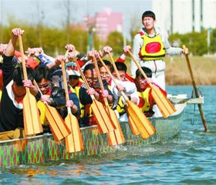 中國中學的龍舟隊有17位高一、高二學生,這僅僅是全市48支中學龍舟隊中的一支。摩拳擦掌,為的就是今年6月1日、2日兩天在東方綠舟舉行的首屆上海市學生龍文化全能賽。據(jù)悉,這場由市教委、市體育局、團市委等部門牽頭主辦的活動,包括天龍 (風箏)、地龍(舞龍)、水龍(龍舟)“三龍比賽”,從小學到大學分為幾個組別。