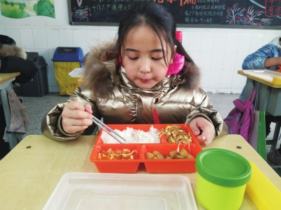 “今天是臘八,我竟然在學校喝到了臘八粥,飯菜很可口,我吃得飽飽的!”三(一)班的陳富豪飯后說。