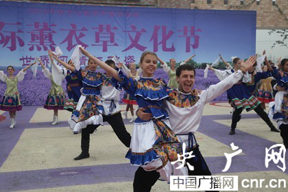 來(lái)自8個(gè)國(guó)家,9個(gè)表演團(tuán)體的近400名表演者薰衣草文化節(jié)開(kāi)幕式上進(jìn)行表演