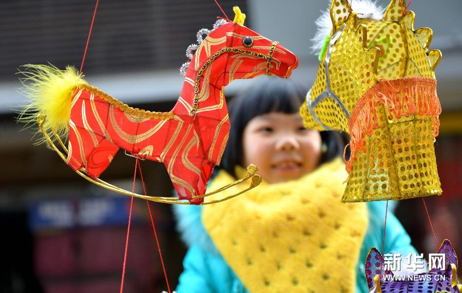 央廣網河南分網消息 據新華網報道:2月10日,一名小朋友在江蘇鎮江花燈市場挑選傳統手工“小馬燈”。