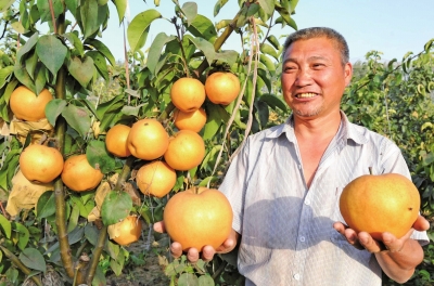央廣網(wǎng)河南分網(wǎng)消息 據(jù)河南日報農(nóng)村版報道:10月11日,溫縣招賢鄉(xiāng)上苑村農(nóng)民武中奇在采摘晚秋黃梨。3年前,他和其他5戶村民種植了48畝晚秋黃梨,今年開始掛果,每畝可收獲黃梨2000公斤。 (記者 楊遠高)