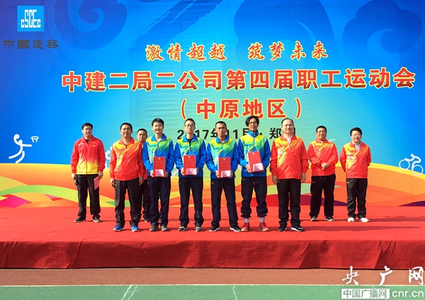 央廣網河南分網11月7日消息 11月4日早7時30分,中建二局二公司“激情超越 筑夢未來”職工運動會(中原片區)精彩開幕。二公司總部、基礎設施管理中心、機電管理中心代表隊以及分公司總部、各在施項目部等400余名運動員齊聚鄭州輕工業學院運動場。二公司總經理李曙東、副總經理崔彥波、基礎設施管理中心經理麻世剛、中原分公司黨委書記朱正遠等出席并參加運動項目。