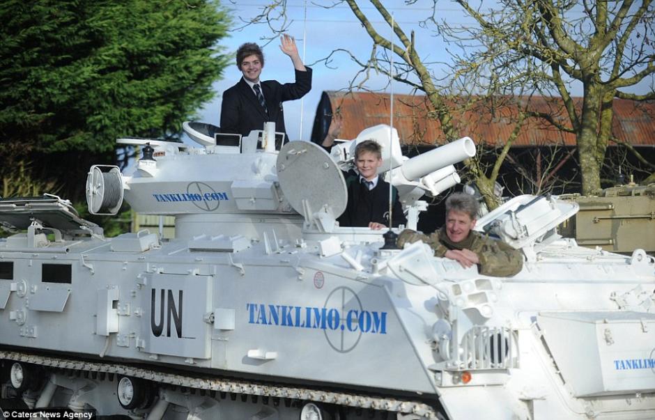 據《每日郵報》2014年12月17日報道,一名父親發明了一個讓自己的兩個兒子不管刮風下雨,每天按時上學的好辦法—每天駕駛一輛重達17噸的坦克送他們上學。軍事迷Nick Mead共擁有總計價值兩百萬、130余輛可以合法上路的坦克,這意味著他的兩個兒子每天可以自己選擇一輛坦克,讓父親送他們上學。他們的座駕就算在惡劣的大雪天也絲毫不受影響。Nick表示,他兒子的同學們每次看到他們的坦克時都目瞪口呆,而且他也很享受其他父母臉上的那種吃驚的表情。(網頁截圖)