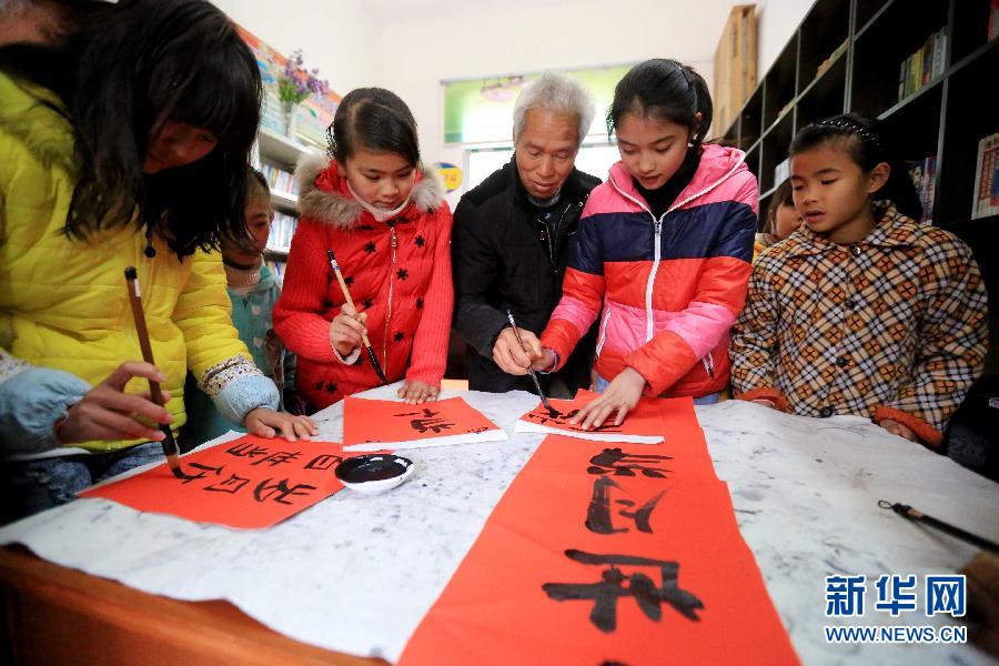 央廣網(wǎng)河南分網(wǎng)消息 寒假來臨,廣西柳州市融安縣組織退休老師和青年志愿者,為該縣留守兒童開設(shè)書法、二胡演奏、剪紙等豐富的中國傳統(tǒng)技藝興趣班,讓留守兒童過個充實有趣的寒假。新華社發(fā)(黃國良 攝)