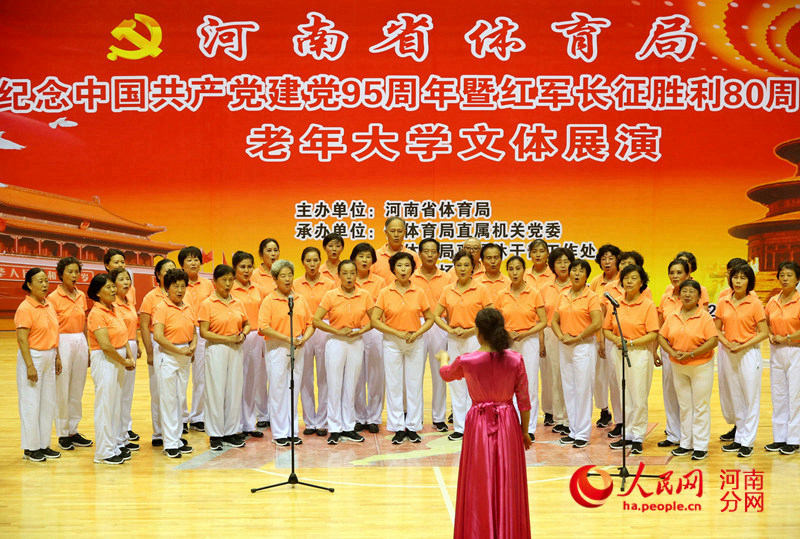 河南:紀念建黨95周年 老年大學學員演繹紅色經典