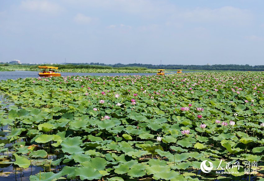 河南淮陽萬畝龍湖荷花競(jìng)放,清香四溢,是游人觀荷消暑的好去處。
