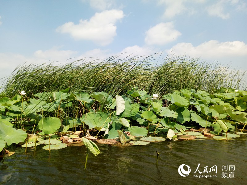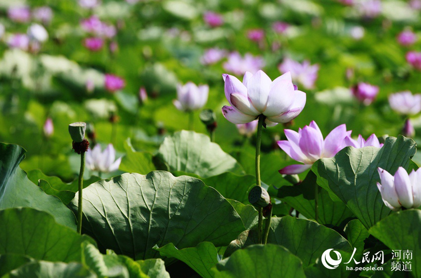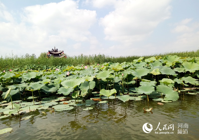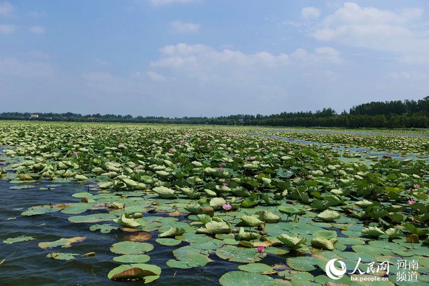 接天蓮葉無窮碧、映日荷花別樣紅。每年夏秋時(shí)節(jié),河南淮陽萬畝龍湖荷花競(jìng)放,清香四溢,成為游人觀荷消暑的好去處。 -