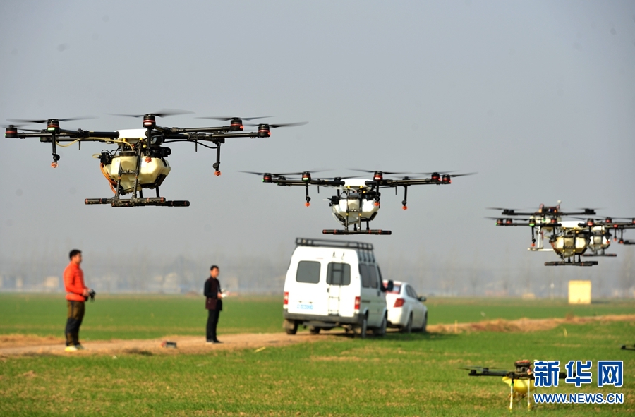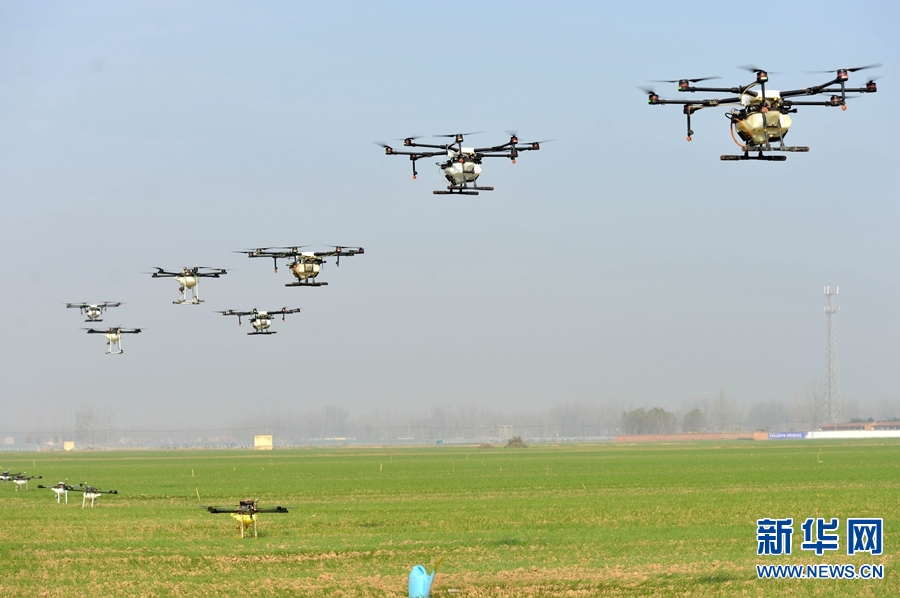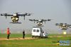 • 11月21日,在河南省夏邑縣胡橋鄉新橋村,植保無人機編隊飛手們在進行無人機飛行演練。今年以來,河南省夏邑縣胡橋鄉新橋村村民朱希望聯合本村十幾個貧困戶,一次性購置30臺無人機,他們組成植保無人機編隊,為全國各地的種植專業合作社和種植大戶的農作物提供有償噴藥作業服務。村民在為農業增效提供保障的同時,也開辟了一條脫貧致富路。新華網發(苗育才 尚偉 攝)