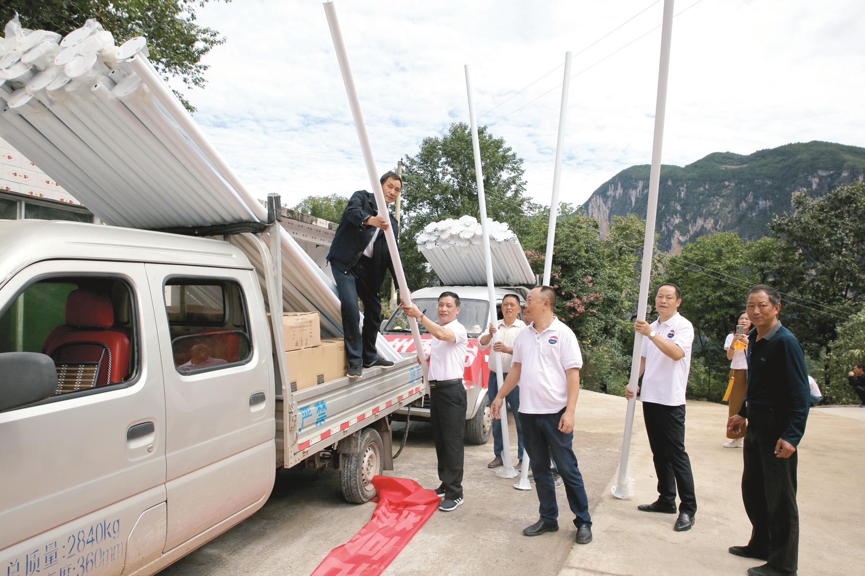 回到恩施后,李先龍把自己的想法說給生意伙伴聽,湖北譽永商貿有限公司的歐陽先生和恩施市國酒茅臺專賣店的負責人韓先生十分贊許,也加盟進來。通過實地踏勘,環村近6公里道路,共需要118盞路燈。三人各自出資2萬余元,合資購買了6萬余元的太陽能路燈,帶領安裝工人來村里加班加點安裝,全部捐獻給村里的鄉親。