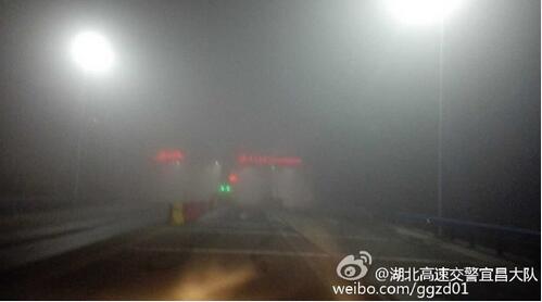 @湖北高速交警:因霧情導致轄區能見度低,滬渝高速伍家崗收費站,宜昌收費站,枝江收費站,安福寺收費站,猇亭收費站均處于關閉狀態。