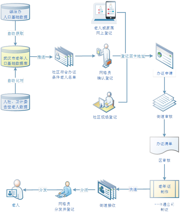 記者了解到,本次老年證辦理改革舉措包括四項。第一是下放老年證辦理權(quán)限,將老年證辦理權(quán)限下放到區(qū)級,由各區(qū)民政局(老齡辦)負(fù)責(zé)組織本轄區(qū)老年證辦理工作;第二是完善武漢市養(yǎng)老服務(wù)信息平臺,逐步完善武漢市養(yǎng)老服務(wù)信息平臺,對接市綜治辦“武漢市社會服務(wù)與管理信息系統(tǒng)”以及公安、人力資源和社會保障、衛(wèi)生計生等部門數(shù)據(jù);第三是簡化辦證程序,本市老年證與武漢城市一卡通兩卡合一,采取由社區(qū)(村)網(wǎng)格員、老年人或其代辦人登錄依托養(yǎng)老服務(wù)信息平臺、老年人或其代辦人直接到所在社區(qū)(村)現(xiàn)場登記等三種途徑進(jìn)行登記;第四是提高辦證效率,由武漢城市一卡通有限公司負(fù)責(zé)制證,制證時間從60日提速到15個工作日。最后是減免辦證費用,新辦老年證免交工本費,首次補(bǔ)辦老年證工本費由個人和市人民政府各承擔(dān)50%,第二次及以后補(bǔ)辦工本費由個人全額繳納。