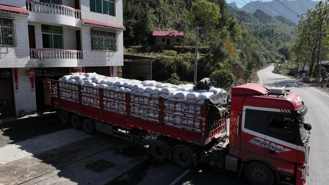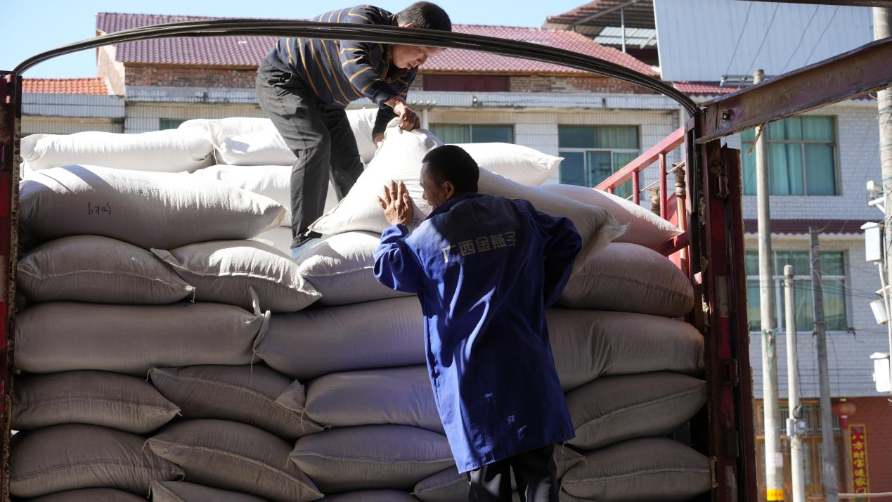 優(yōu)質(zhì)稻種裝車(周玉玲 攝)