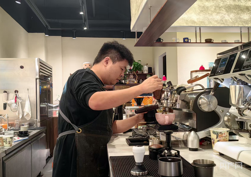 丁陽正在認(rèn)真制作咖啡(央廣網(wǎng)發(fā) 栗穩(wěn) 攝)