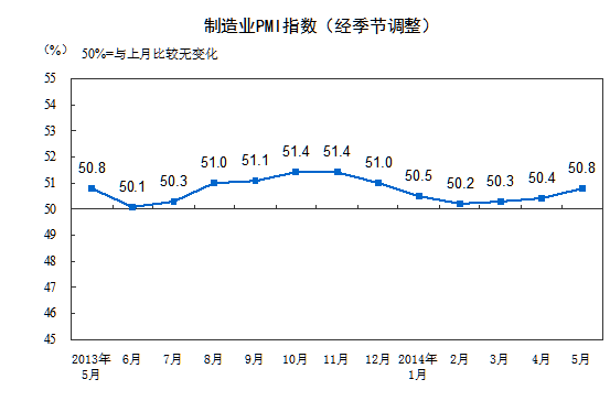 2014年5月中國制造業(yè)采購經理指數(shù)為50.8%