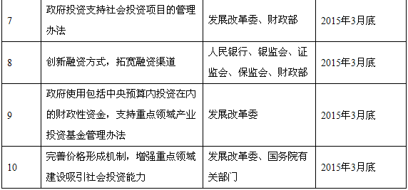 創(chuàng)新重點(diǎn)領(lǐng)域投融資機(jī)制對(duì)穩(wěn)增長(zhǎng)、促改革、調(diào)結(jié)構(gòu)、惠民生具有重要作用。各地區(qū)、各有關(guān)部門要從大局出發(fā),進(jìn)一步提高認(rèn)識(shí),加強(qiáng)組織領(lǐng)導(dǎo),健全工作機(jī)制,協(xié)調(diào)推動(dòng)重點(diǎn)領(lǐng)域投融資機(jī)制創(chuàng)新。各地政府要結(jié)合本地實(shí)際,抓緊制定具體實(shí)施細(xì)則,確保各項(xiàng)措施落到實(shí)處。國務(wù)院各有關(guān)部門要嚴(yán)格按照分工,抓緊制定相關(guān)配套措施,加快重點(diǎn)領(lǐng)域建設(shè),同時(shí)要加強(qiáng)宣傳解讀,讓社會(huì)資本了解參與方式、運(yùn)營方式、盈利模式、投資回報(bào)等相關(guān)政策,進(jìn)一步穩(wěn)定市場(chǎng)預(yù)期,充分調(diào)動(dòng)社會(huì)投資積極性,切實(shí)發(fā)揮好投資對(duì)經(jīng)濟(jì)增長(zhǎng)的關(guān)鍵作用。發(fā)展改革委要會(huì)同有關(guān)部門加強(qiáng)對(duì)本指導(dǎo)意見落實(shí)情況的督促檢查,重大問題及時(shí)向國務(wù)院報(bào)告。