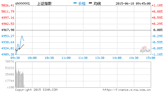 央廣網北京6月18日消息 據經濟之聲《交易實況》報道,周四早盤,兩市雙雙低開,滬指報4942.52點,跌25.38點,跌幅0.51%,深成指報17367.13點,跌38.44點,跌幅0.22%,創業板報3734.91點,跌6.45點,跌幅0.17%。