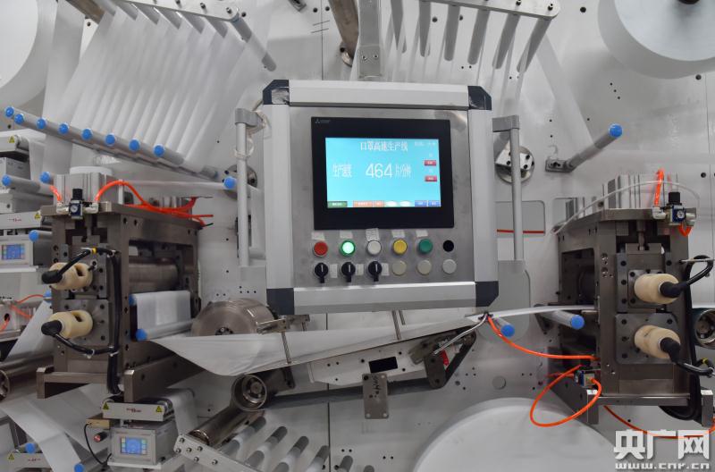 日前,婺源縣半球實業有限公司轉投口罩生產,引進一條全自動口罩高速生產線,并備足2個月的口罩生產原料,正在全力趕制訂單。據了解,該條生產線每分鐘最多可生產口罩1000個,日產量最高可達60萬個。(通訊員江淦泉 俞秋玲攝影報道)