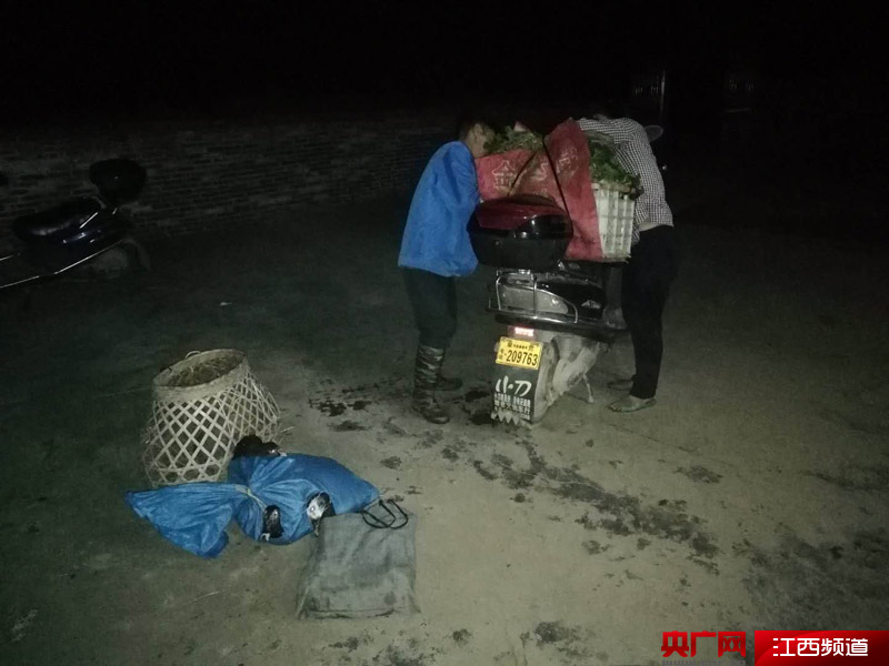 緊接著他們又去洗菜,抓鴨子,打包,捆綁上電動車……一轉眼就已是凌晨四點。隨著一聲“老婆,路上注意安全,騎慢點,千萬小心!”“好嘞,路走這么熟了,放心!”曾友華騎著承載了兩三百斤貨物的電動車星夜獨自從江口鎮三團村趕往20公里外的贛縣區菜市場售賣。