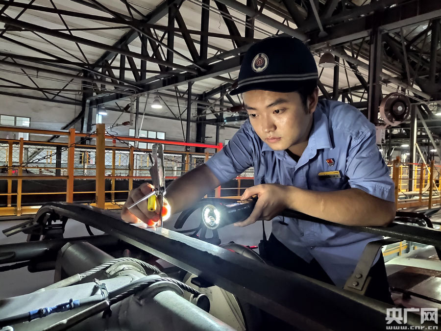 南昌西所專項(xiàng)修組工長(zhǎng)吳宿正在對(duì)走行部進(jìn)行檢查