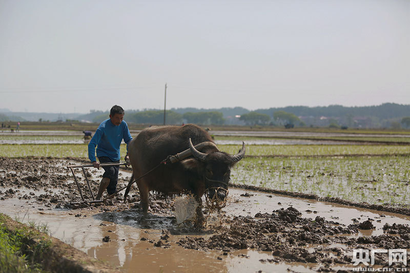 4月9日,江西省吉安市吉水縣丁江鎮塘邊村高標準農田建設區,村民正在耕田