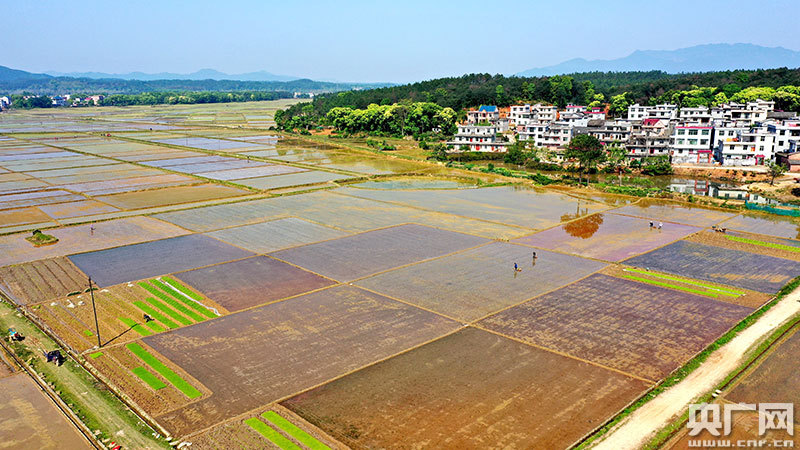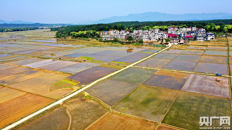 4月9日,江西省吉安市吉水縣丁江鎮塘邊村高標準農田建設區一片忙碌,村民正在春播春種