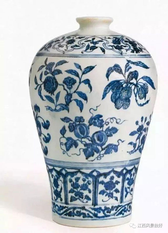 三、明永樂青花如意垂肩折枝花果紋梅瓶