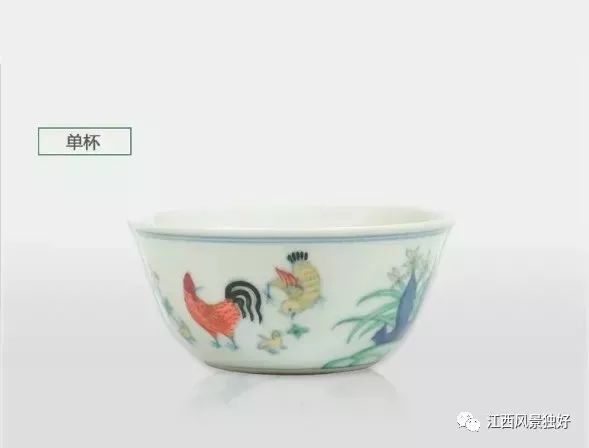斗彩工藝創燒于明代成化年間,用青花勾廓、五彩填色,有青花與彩瓷競艷之意。雞缸杯是明成化斗彩杯之一,即飾子母雞圖之盛酒小杯,環繪公雞偕母雞領幼雛覓食。雞缸杯色彩繽紛鮮明,撫之柔潤如玉,繪畫率真可人。
